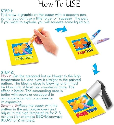 【Easy To Use】-- Draw anything you like in a paper or any surfaces, apply even heat using a blow dryer or microwave for at least 2 minutes and you'll have amazing puffy art projects!