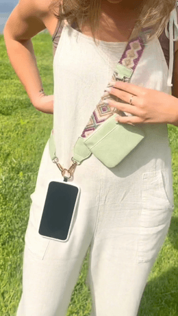 HANDS-FREE CONVENIENCE - Enjoy hands-free convenience with the Clip & Go Strap. Ideal for those on the move, this strap keeps your phone handy whether you're navigating city streets or attending a music festival. The crossbody design and detachable vegan leather pouch make it both stylish and functional.
