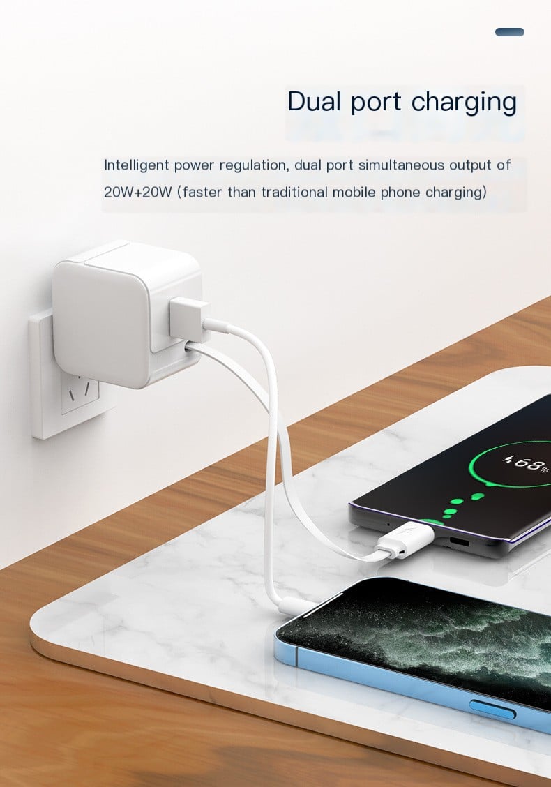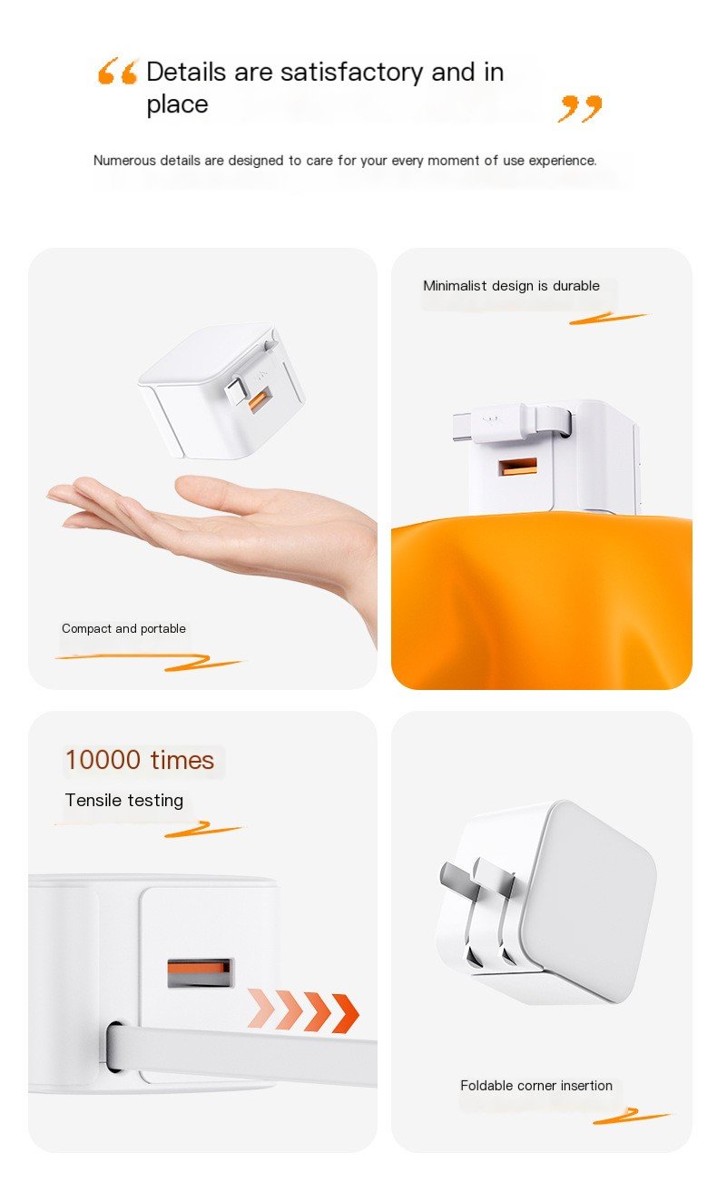 - The retractable phone wall charger has a USB-A port and a retractable Type-C cable to charge 2 devices simultaneously. It provides up to 20W of stable and efficient fast charging capacity.