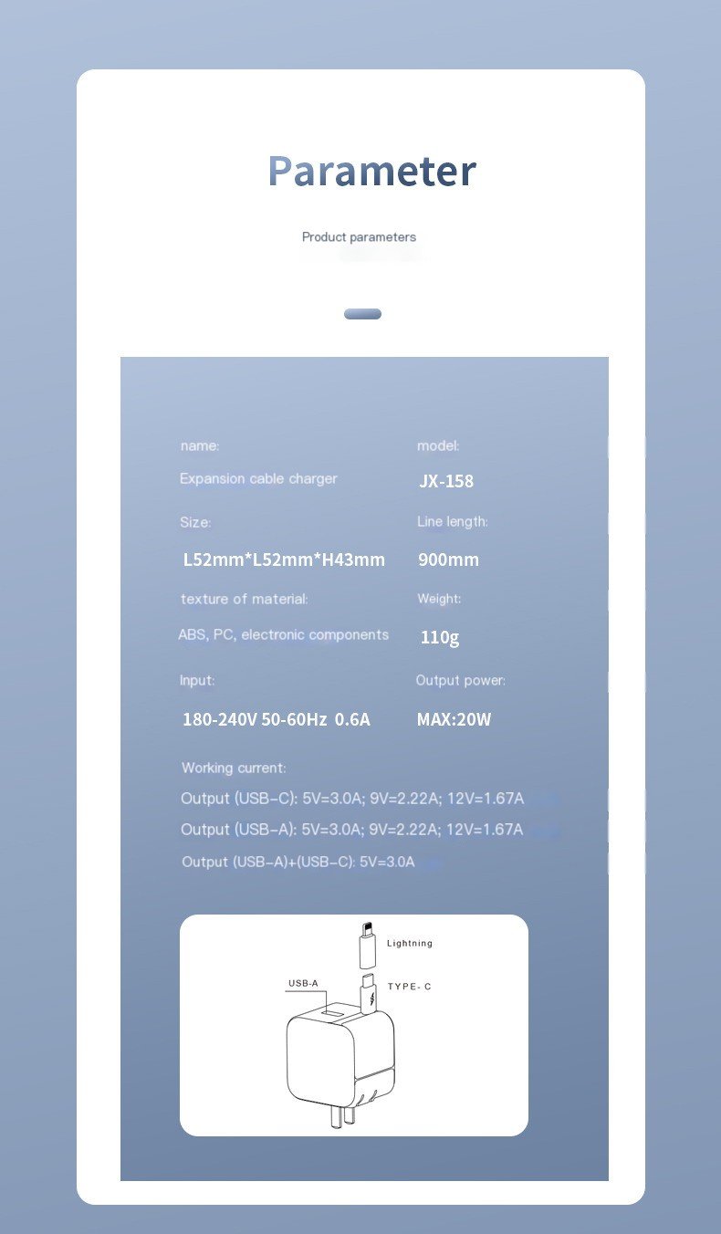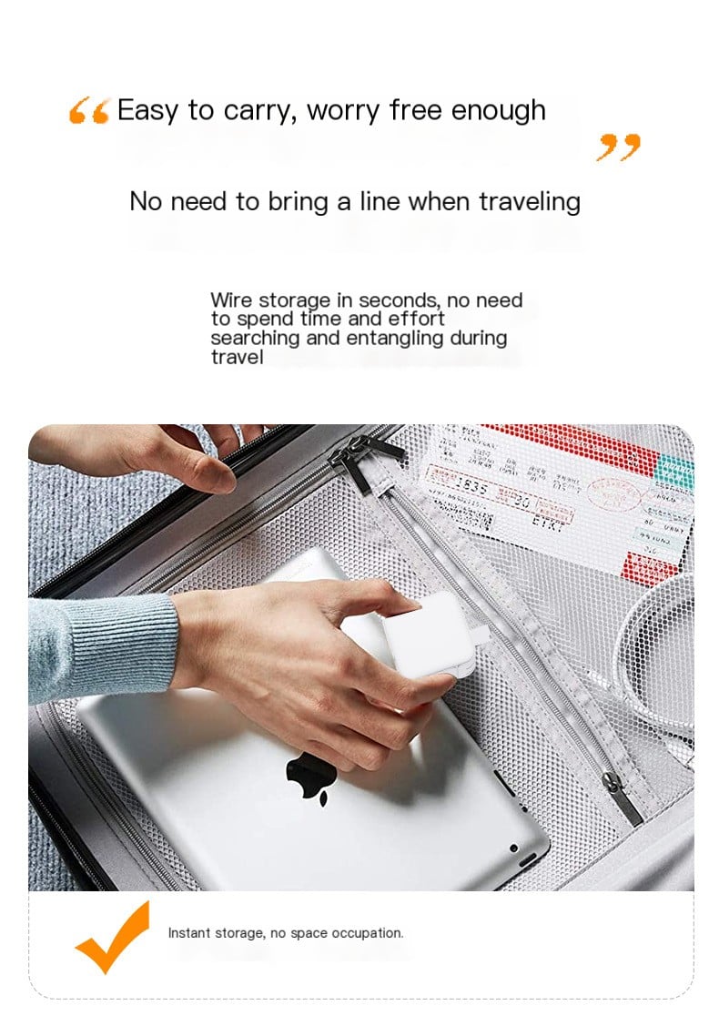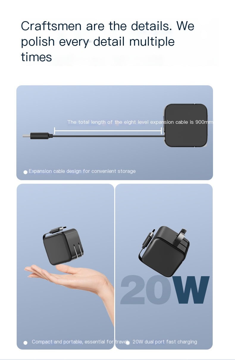 - The retractable wall charger comes with a built-in retractable type-c cable. The type-c cable has a maximum retractable length of 90cm (35.4 inches) and can be adjusted to 8 levels to meet different length needs.