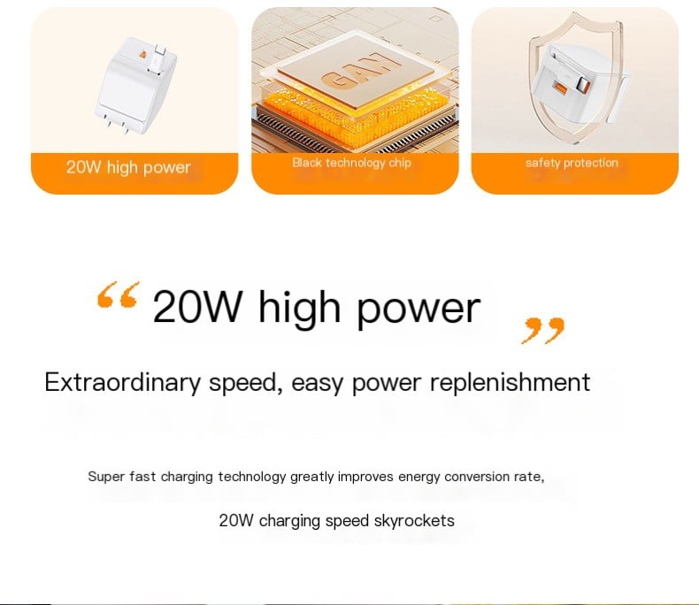 - The USB-C fast charging wall charger uses advanced Gallium Nitride technology, built-in multiple protection system and high-quality microchip. Gallium Nitride components waste less power and generate less heat, ensuring more efficient charging.