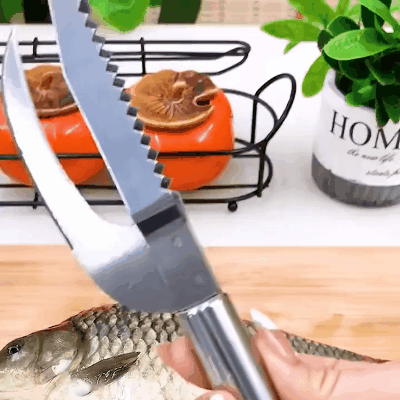 Scraping scales, cutting meat, gutting, all these complicated tasks leave it to this delicate knife now. Yes, he can do these perfectly!
