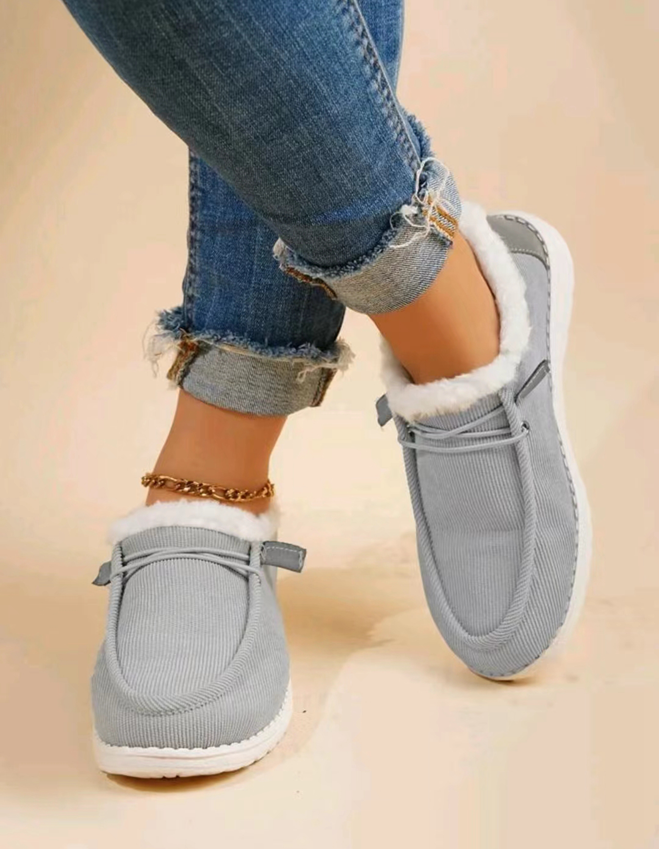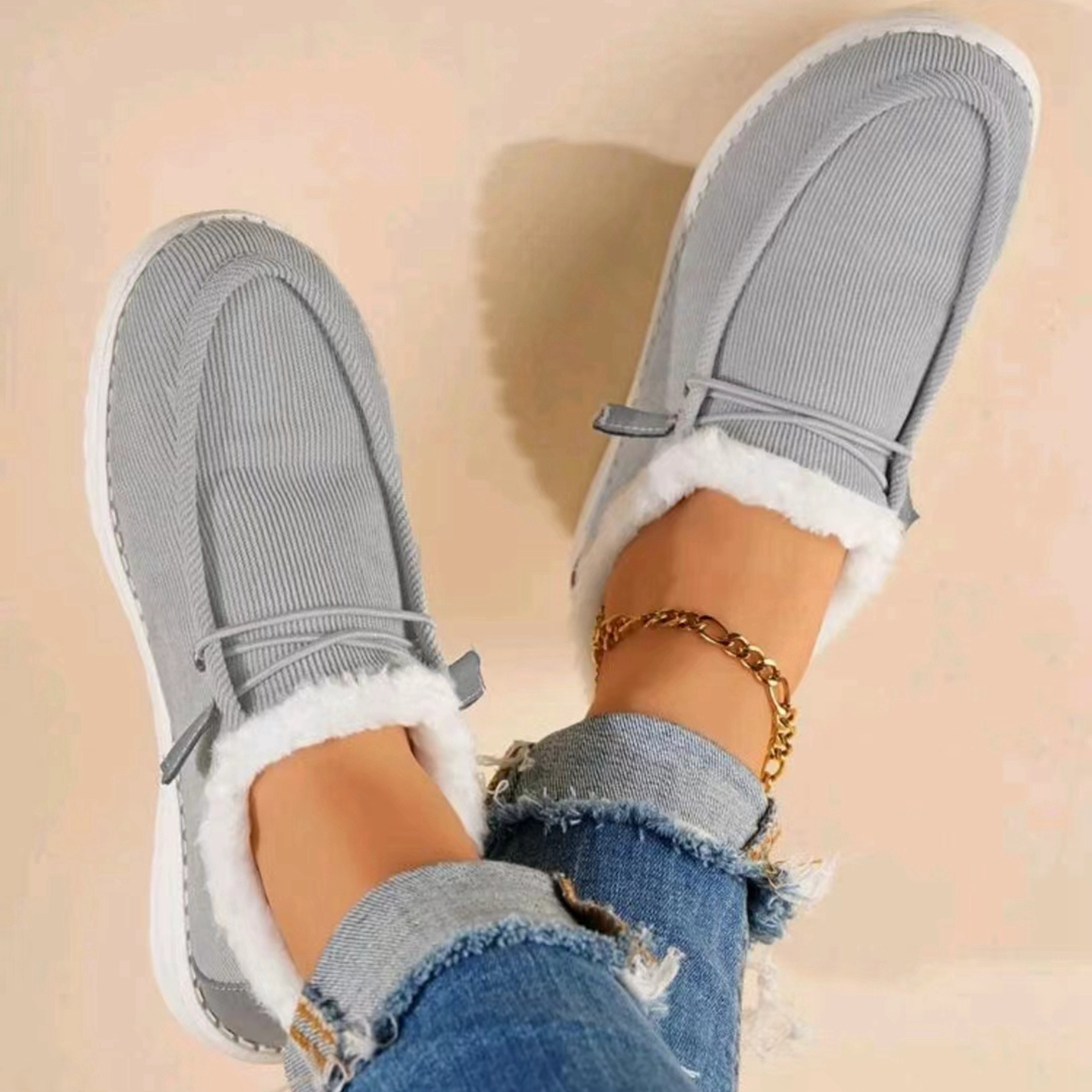Warm Fleece Slip On Loafer Sneakers, Low Top Slip-On Shoes, Lightweight & Comfortable Walking Shoes, Women's Footwear(🎁Christmas Hot Sale🎁)
